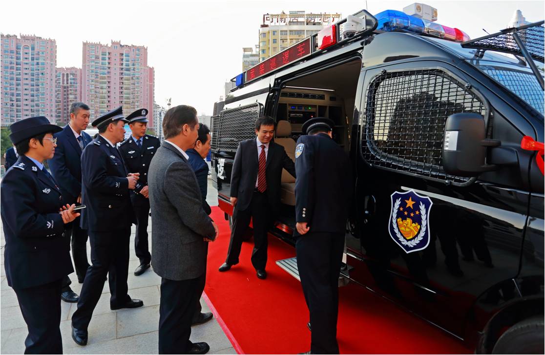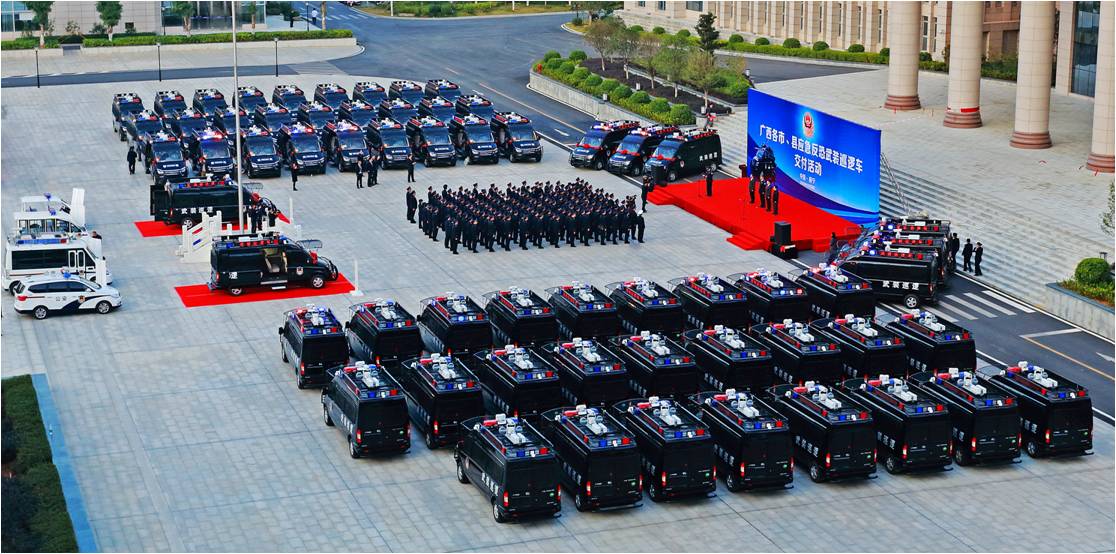 這批反恐武裝巡邏車是公司根據(jù)廣西全區(qū)反恐實(shí)戰(zhàn)需求和區(qū)域特點(diǎn),研發(fā)生產(chǎn)的全新一代五菱V80特種專用警務(wù)產(chǎn)品。每輛應(yīng)急反恐武裝巡邏車能滿足5-6個(gè)警員攜帶裝備執(zhí)行出警和應(yīng)急處突任務(wù),整車安裝有防護(hù)網(wǎng),前撞擊桿,后防護(hù)桿,可清除一般性障礙,撞擊作案車輛,具有強(qiáng)悍的防暴制暴和突擊能力及穩(wěn)固的自我防護(hù)能力等特點(diǎn)。同時(shí),該車還配備有全方位星光級(jí)夜視車載智能監(jiān)控系統(tǒng)、升降式強(qiáng)光照明燈、公安網(wǎng)移動(dòng)上網(wǎng)本及多形態(tài)電源供給系統(tǒng),可與各級(jí)公安監(jiān)控指揮中心實(shí)時(shí)聯(lián)絡(luò),即使在極端惡劣條件下,均可啟動(dòng)全方位監(jiān)控及語(yǔ)音通訊功能,通過(guò)