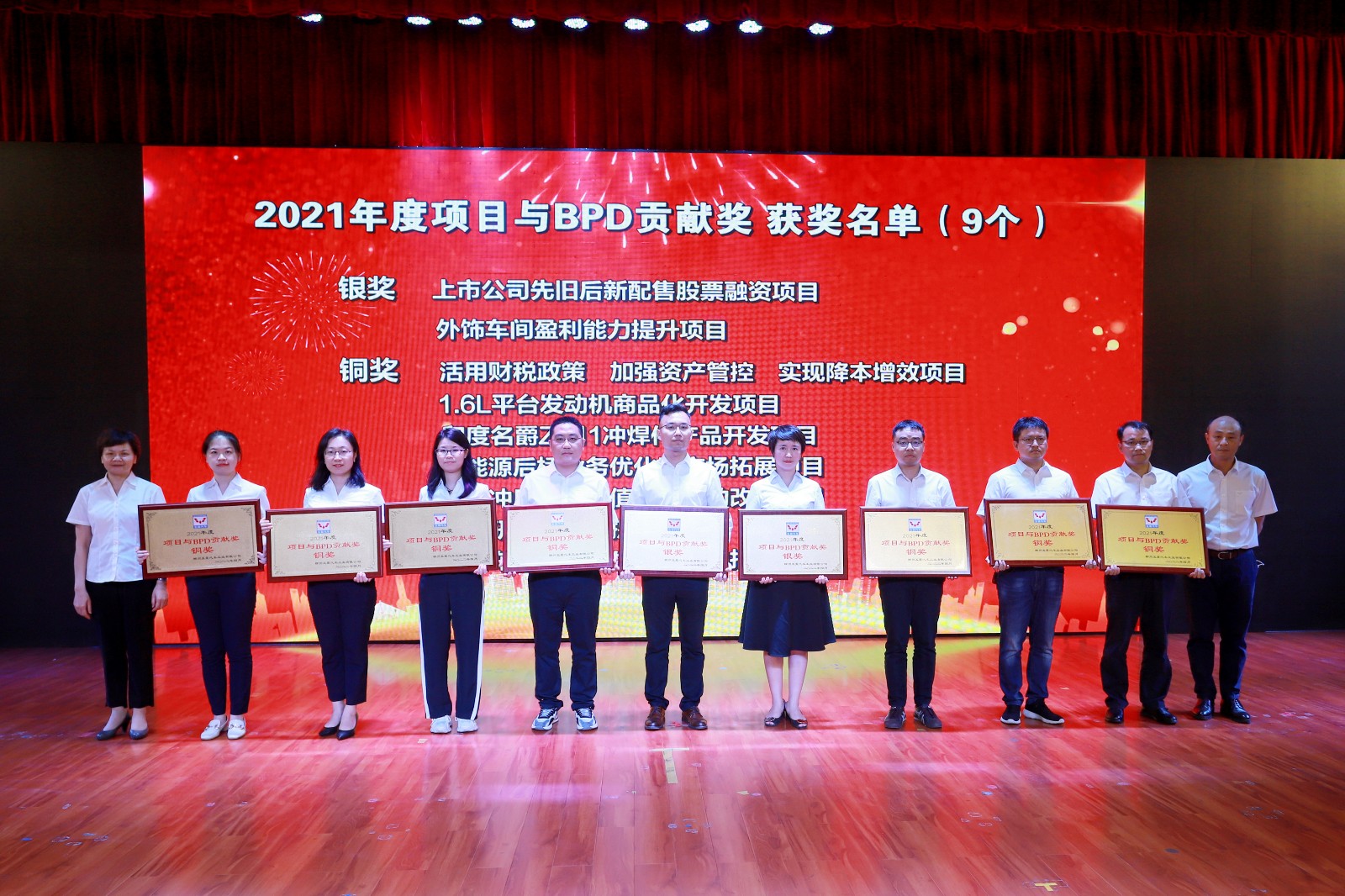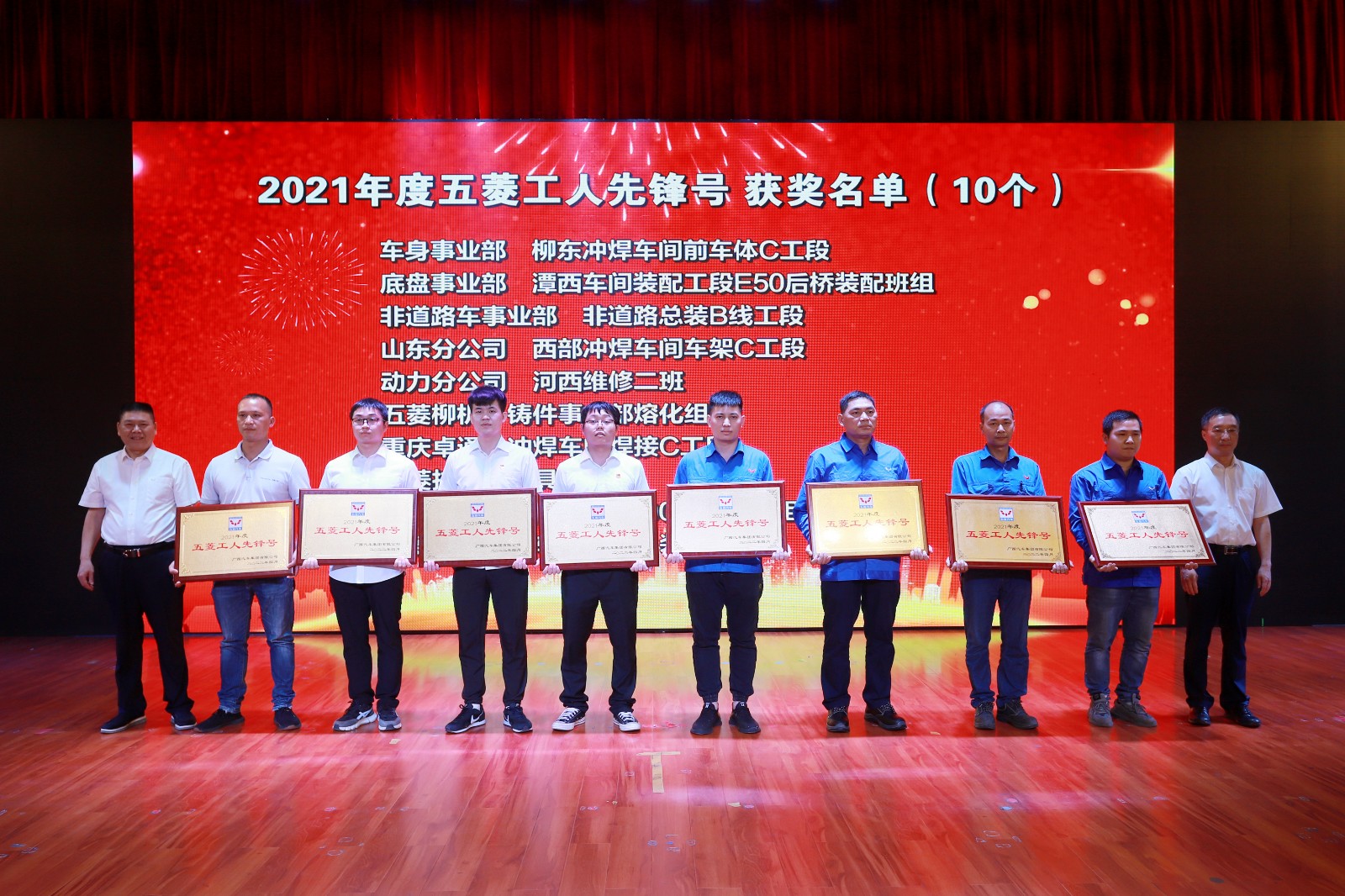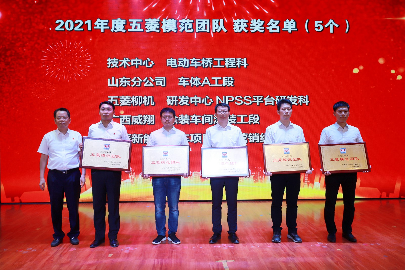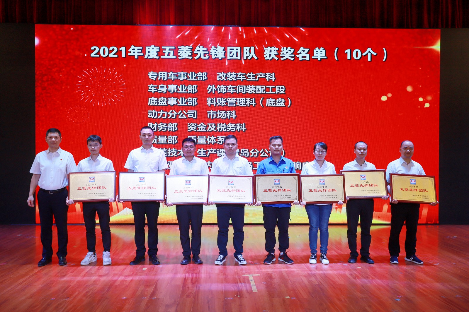 成績的取得是全體干部職工上下同心,實干拼搏的結(jié)果,一批批想干事、能干事、干成事的五菱人以時不我待的沖勁、只爭朝夕的干勁,生動演繹著“艱苦創(chuàng)業(yè),自強不息”的五菱精神。大會為過去一年涌現(xiàn)出的優(yōu)秀團隊和個人進行了表彰,共34個先進團隊、52名先進個人獲得榮譽。公司領(lǐng)導(dǎo)為獲獎團隊及個人頒獎,感謝他們?yōu)榧瘓F做出的卓越貢獻。