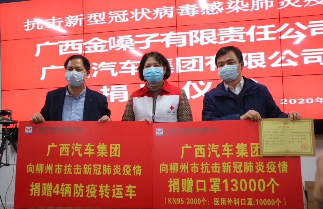 新型冠狀病毒感染的肺炎疫情牽動(dòng)著全國(guó)人民的心,也牽動(dòng)著五菱人的心。疫情發(fā)展至今,廣西汽車(chē)集團(tuán)積極響應(yīng)自治區(qū)黨委、政府及柳州市委、市政府關(guān)于新型冠狀病毒感染肺炎疫情防控工作的決策部署,全力開(kāi)展疫情防控工作,根據(jù)當(dāng)下的實(shí)際情況,發(fā)揮自身優(yōu)勢(shì),進(jìn)行了一系列公益捐贈(zèng),為國(guó)家抗“疫”大戰(zhàn)貢獻(xiàn)國(guó)企擔(dān)當(dāng),共同組成抗擊疫情的強(qiáng)大后盾。